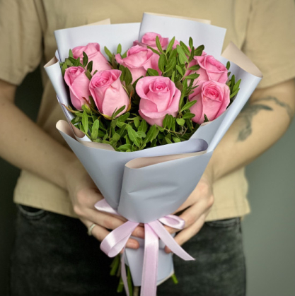 Купить букет из 9 розовых кенийских роз в Чэнду