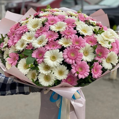 Букет из 101 белой и розовой герберой | Купить в Чэнду